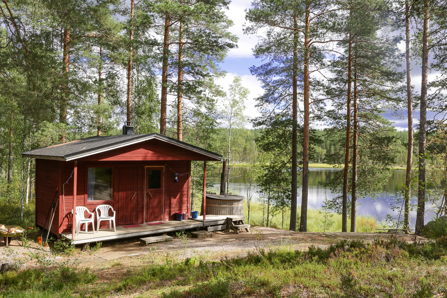 Mökin sijainti on loistava: Haukkajärven rannassa Helvetinjärven kansallispuistossa. Ruovedellä sijaitsee. Haukkajärvi on kohtuullisen kokoinen erämaajärvi. Toisin sanoen mökin ympäristö on hyvin seesteinen, yhtäkään ihmistä ei nähty. Hiukan vaikeakulkuisen tien päässä. Järvessä nähtiin kuikka ja joutsenia. Puhtaan oloinen luonto. Omaa rauhaa arvostavalle sopii.