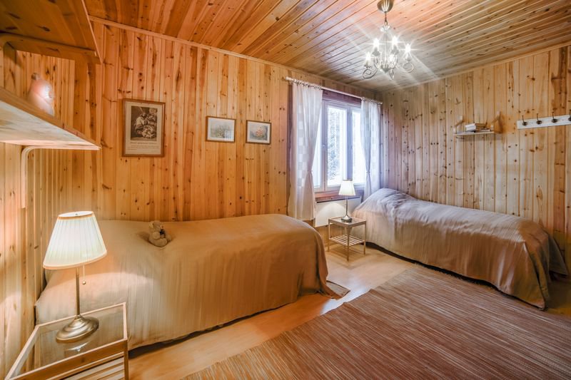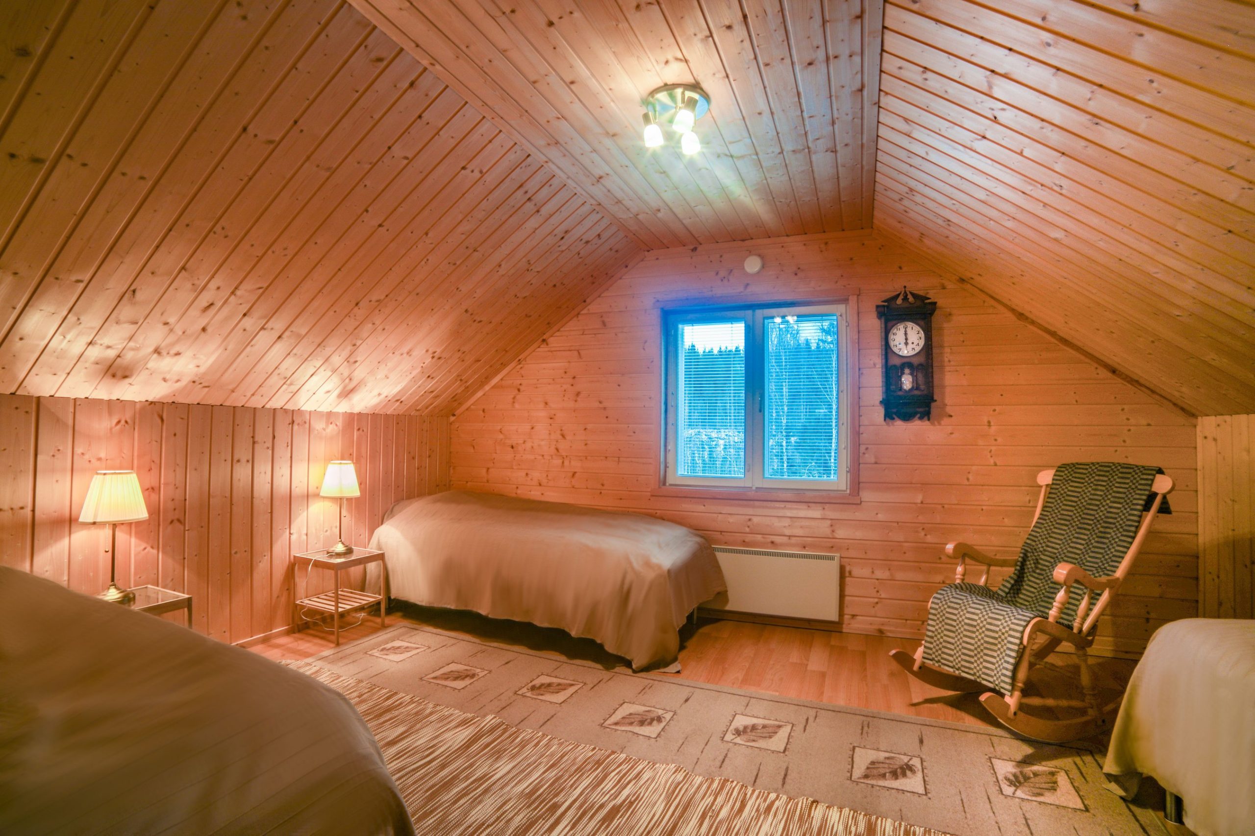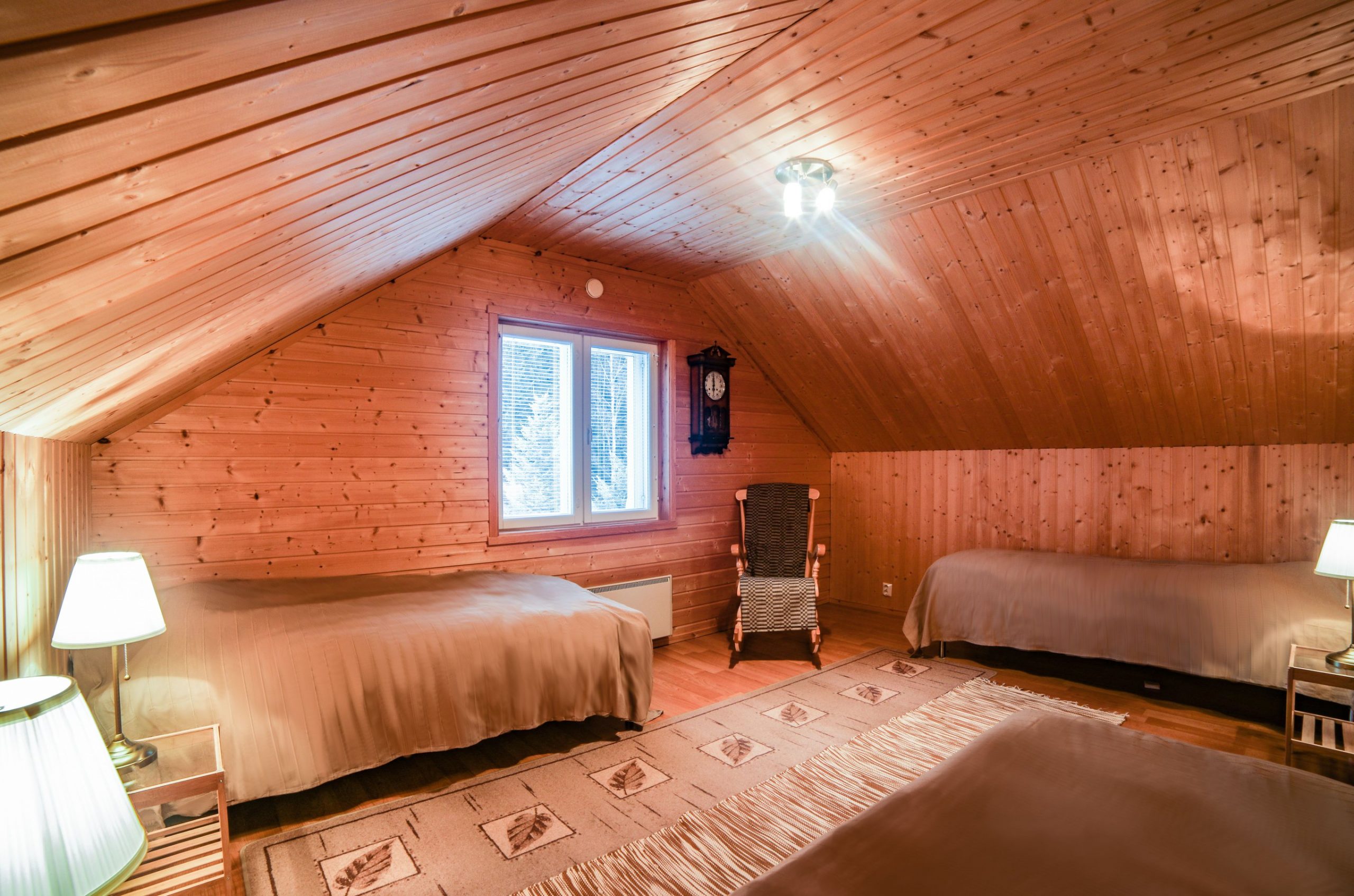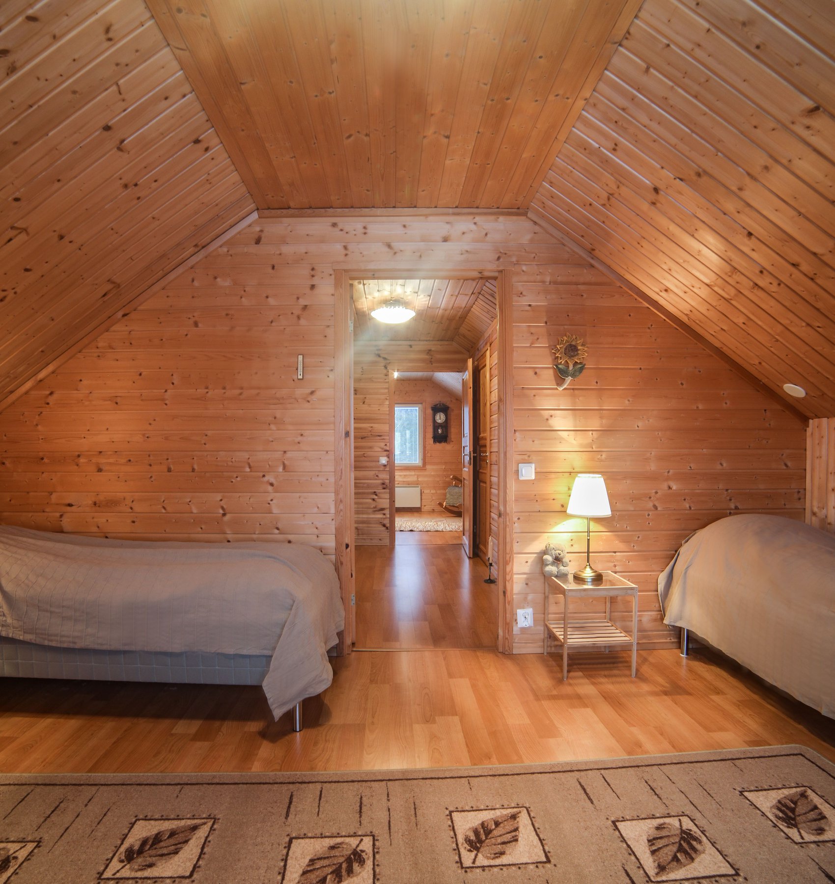 Paukkila on kaksikerroksinen mökki, jossa majoittuu mukavasti suurempikin perhe tai seurue.