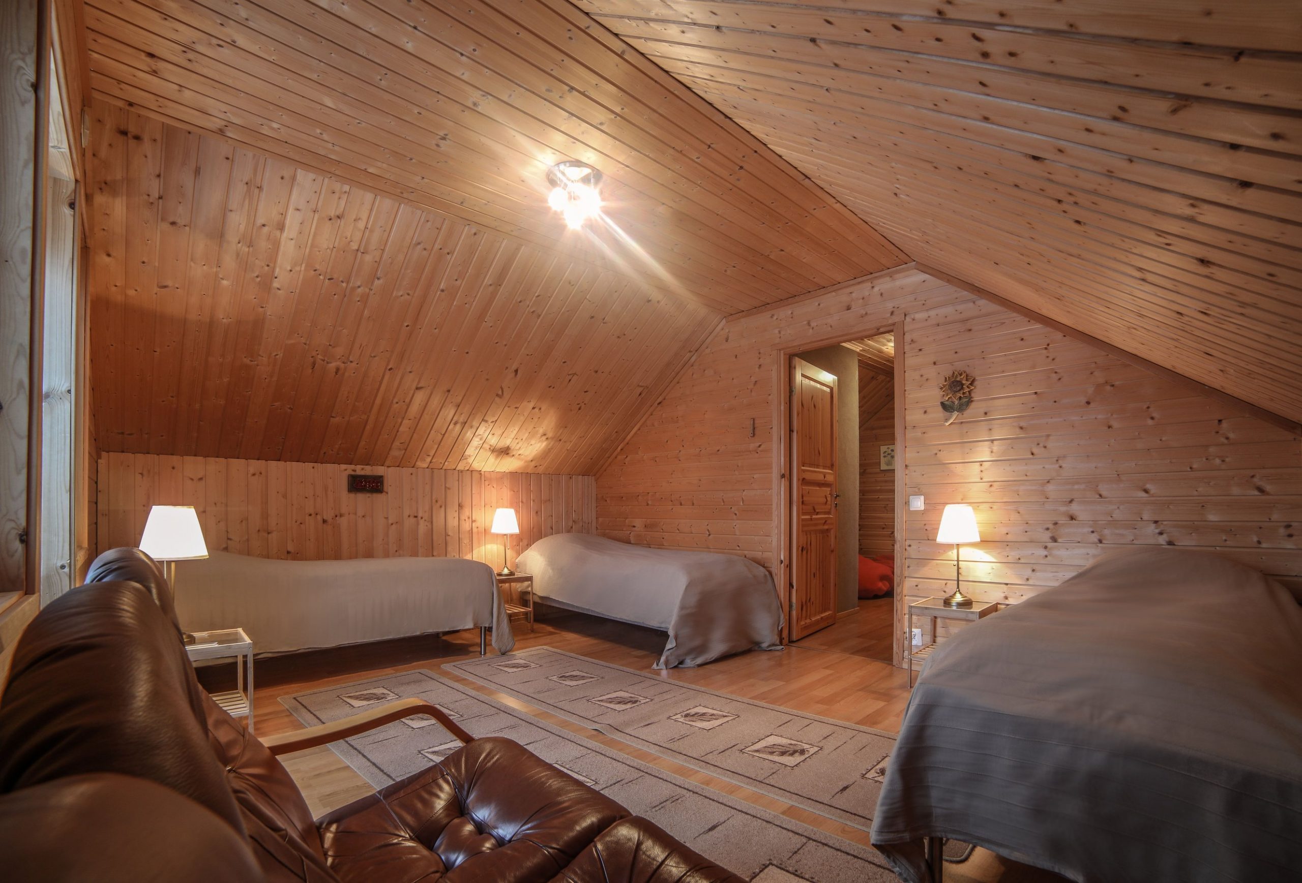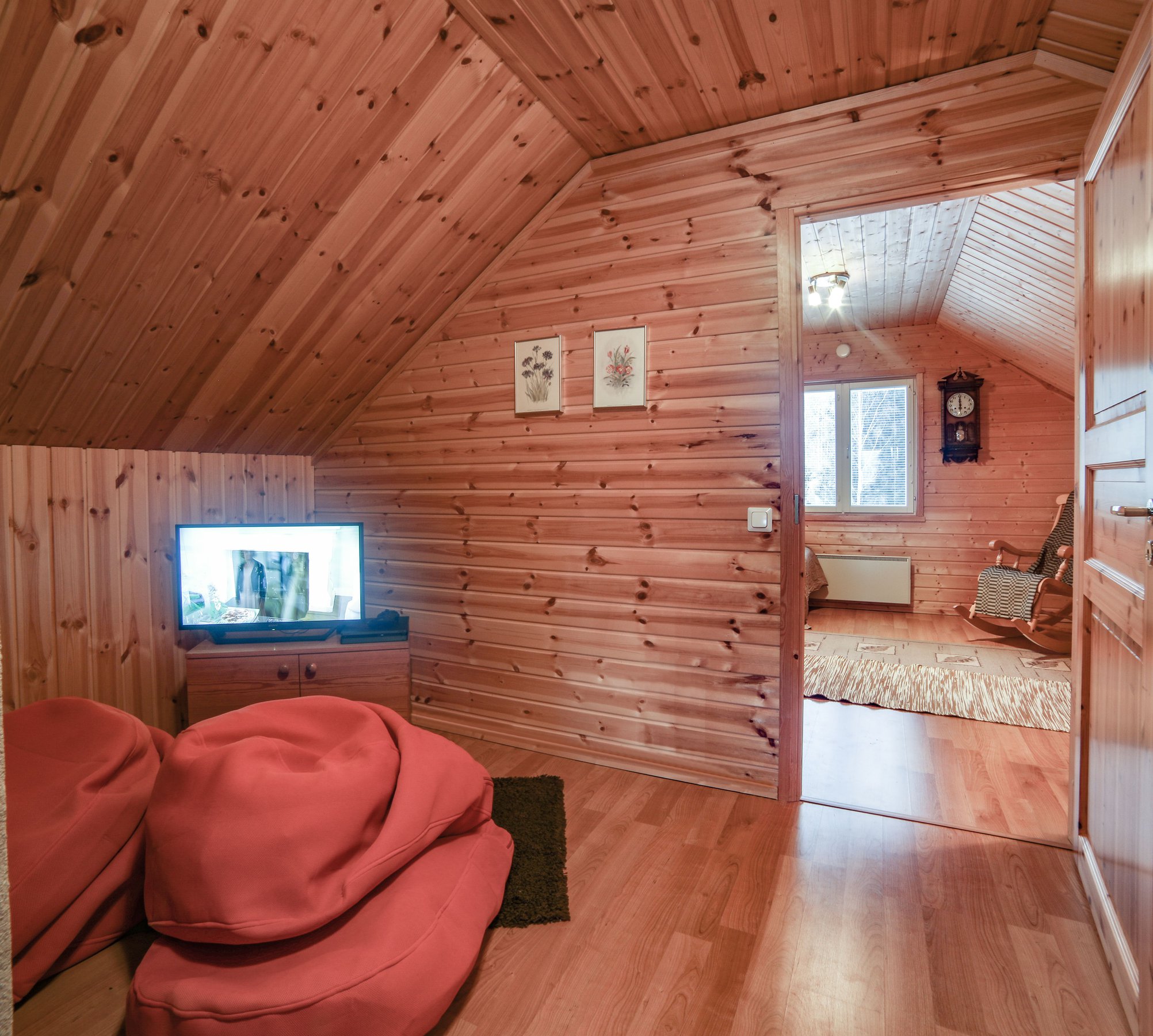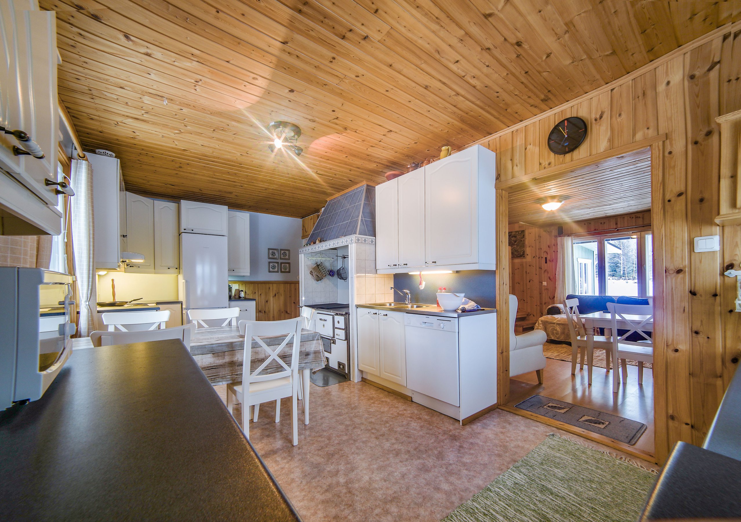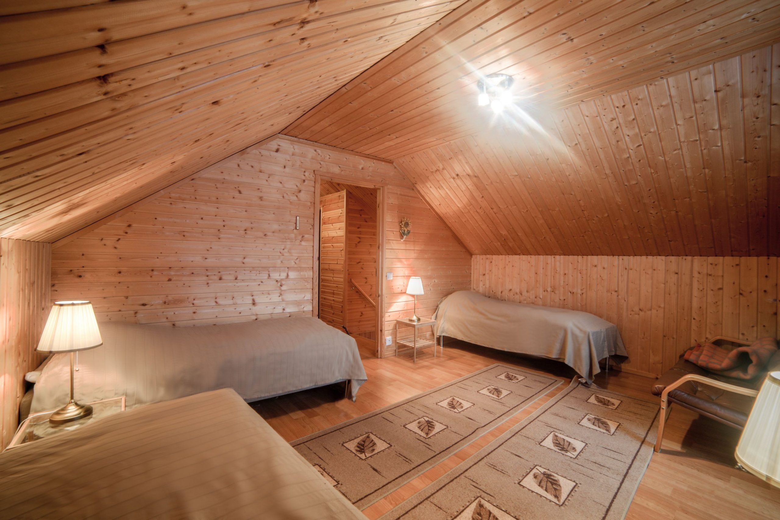 Paukkila on kaksikerroksinen mökki, jossa majoittuu mukavasti suurempikin perhe tai seurue.